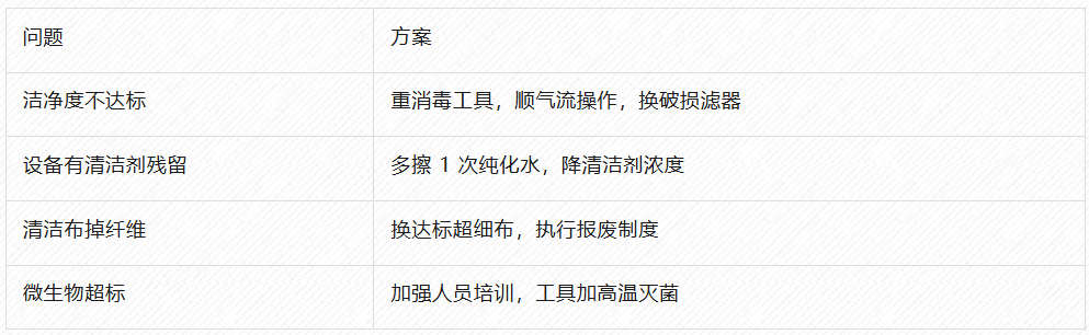 3. 保潔后 QA 驗(yàn)收(污漬 / 粒子 / 微生物),填記錄表存檔≥1 年。