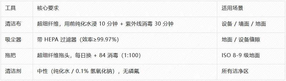 3. 無菌低塵:敏感領(lǐng)域工具需滅菌(高溫 / 紫外線),人員嚴(yán)格防護(hù);