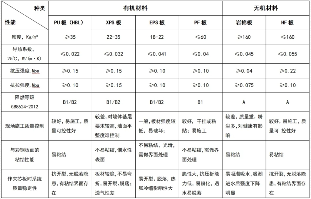 彩鋼夾芯板芯材按其產品的化學成分可分為兩大類,即一類是有機化學泡沫材料,如聚苯乙烯泡沫塑料EPS、聚氨酯泡沫塑料PU、擠塑聚苯乙烯泡沫XPS、酚醛泡沫塑料PF等;另一類是無機纖維材料,如巖棉板、發泡水泥板等。