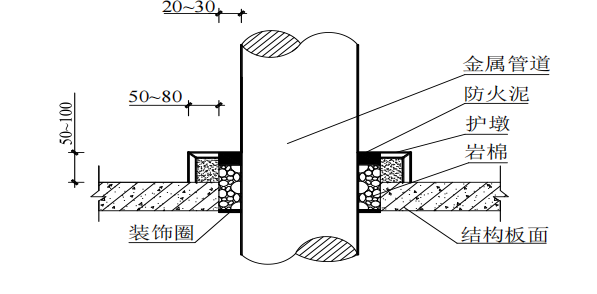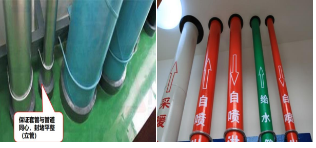 2、安裝在樓板內的套管,其頂部高出地面 20mm;安裝在衛生間及廚房時高出地面 50mm,底部與與樓板底面齊平。安裝在墻壁內的套管其二端與飾面齊平。